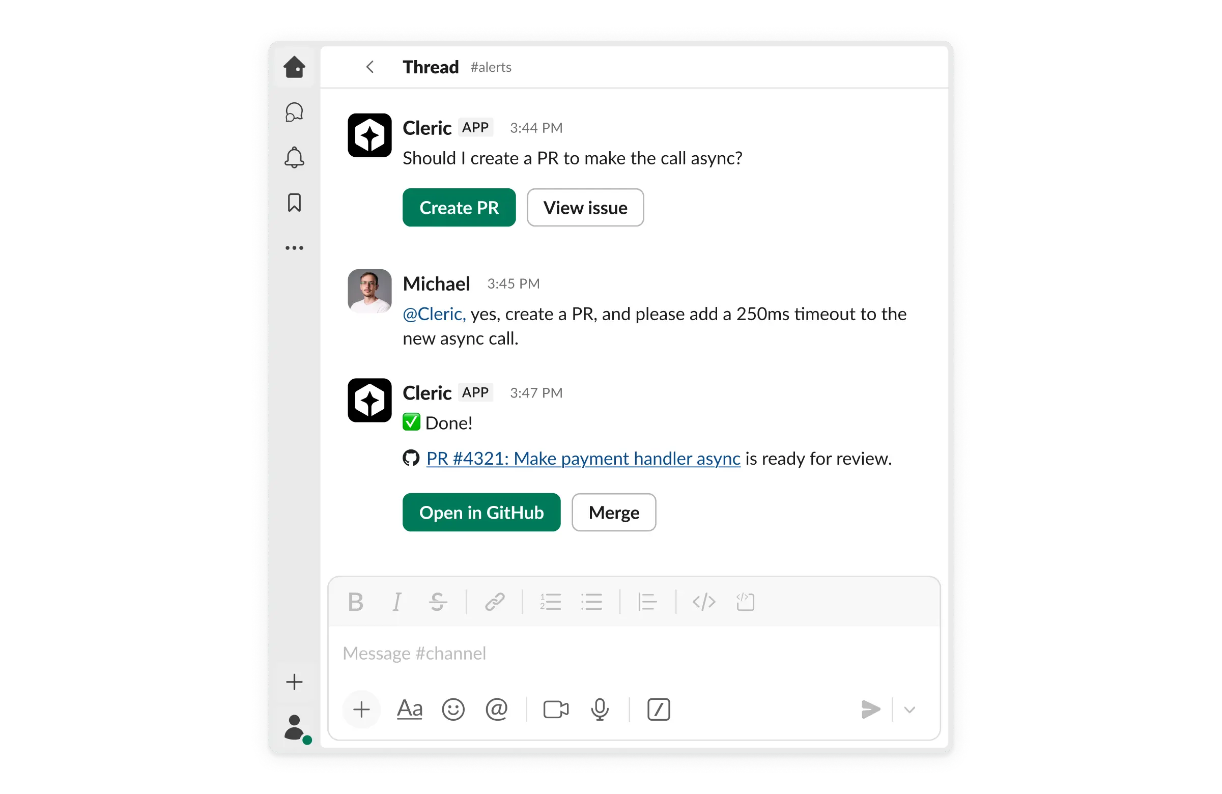 “I see Cleric functioning as an SRE companion available for our Software Engineers. An SRE in my team should maintain a global view across all engineering teams. This means if one team has already solved an alert, we can apply that knowledge elsewhere. It's really about leveraging SRE expertise across different areas of responsibility.”