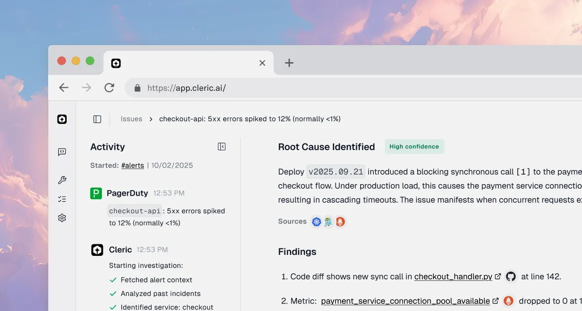 Cleric investigates every alert like your most experienced engineer: always available, always contextual, always ready in Slack.